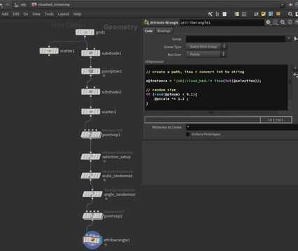 1. Create a sphere base. Mountain, noise, vdbpoly, scatter and Random scale and normal